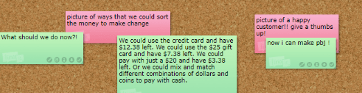 The translation of ideas, or how the ideas or concepts are expereinced in the classroom are valuable. At the beginning the teacher and students are interacting verbally in a whole group discussion to transfer ideas about addition and subtraction. After that, the translation of ideas is on the websites that they are on. The websites allow the students to gain information in a fun way in the form of games. This is how the students begin to understand the concepts. PlanetTurtle differentiates the games and provides information to the teacher so that the teacher can see how the students are doing. This allows the teacher to step in and help the students who need it much sooner than if the teacher had to go around and check all the answers and see who needed help. This is the form of offloading in the lesson, as the teacher relies on the website to accomplish the task and make his life easier. Similarly, because the website provides information to the teacher, it is a kind of monitering or formative assessment because it shows the results of the games instantly, which allows the teacher to make changes or help students as soon as possible. It also holds the student accountable because they know that they need at least an 80% to move on. Overall, I think that technology has the potential to make students and teachers smarter, if the teachers and students are using it correctly. I think it allows for more intervention of the teacher and another way to learn for the students.